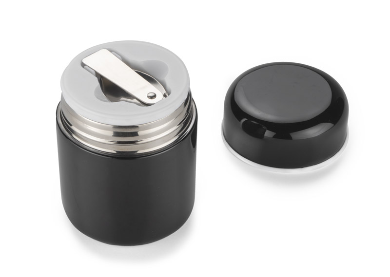 Pojemnik prezentuje się bardzo elegancko, dostępny jest w kolorze czarnym, co sprawia, że jest także świetnym wyborem jako prezent korporacyjny lub element brandingu firmy. Jego uniwersalny design sprawdzi się w promocji każdej branży związanej z żywnością, zdrowym trybem życia czy aktywnością outdoorową. Pojemnik termiczny DINA 280 ml będzie idealny dla pracowników biurowych, studentów, nauczycieli, a także entuzjastów wycieczek czy pikników.
