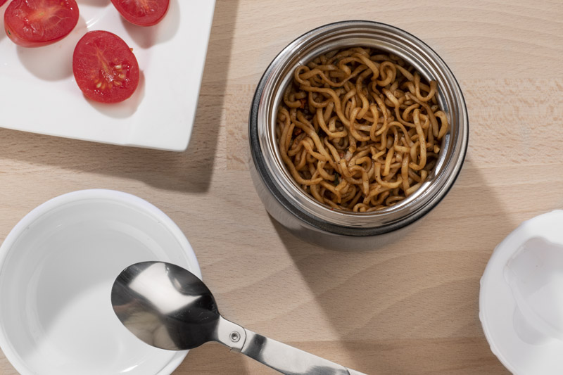 Ten stylowy pojemnik wyposażony jest w składaną łyżkę ze stali nierdzewnej, która jest dyskretnie umieszczona w zakrętce, co gwarantuje, że zawsze masz przy sobie wszystko, co potrzebne do spożywania posiłku. Wnętrze wykonane z tego samego materiału o podwyższonym standardzie zapewnia utrzymywanie temperatury do 8 godzin, dzięki czemu możesz cieszyć się ciepłym lub chłodnym jedzeniem w zależności od potrzeb. Izolacja próżniowa gwarantuje, że temperatura Twojego posiłku pozostanie stabilna przez długi czas.